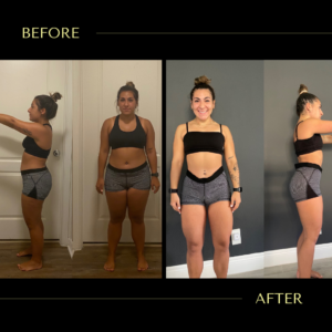 First thing first, your results do not happen overnight. A few years ago, a good friend of mine invited me to join her at-home fitness and nutrition program. Once I joined, she told me I had to take the “before” photo on the right. I remember how uncomfortable I was taking this photo, but I knew from that moment on that something would change for me physically and mentally. I made a promise to myself.
